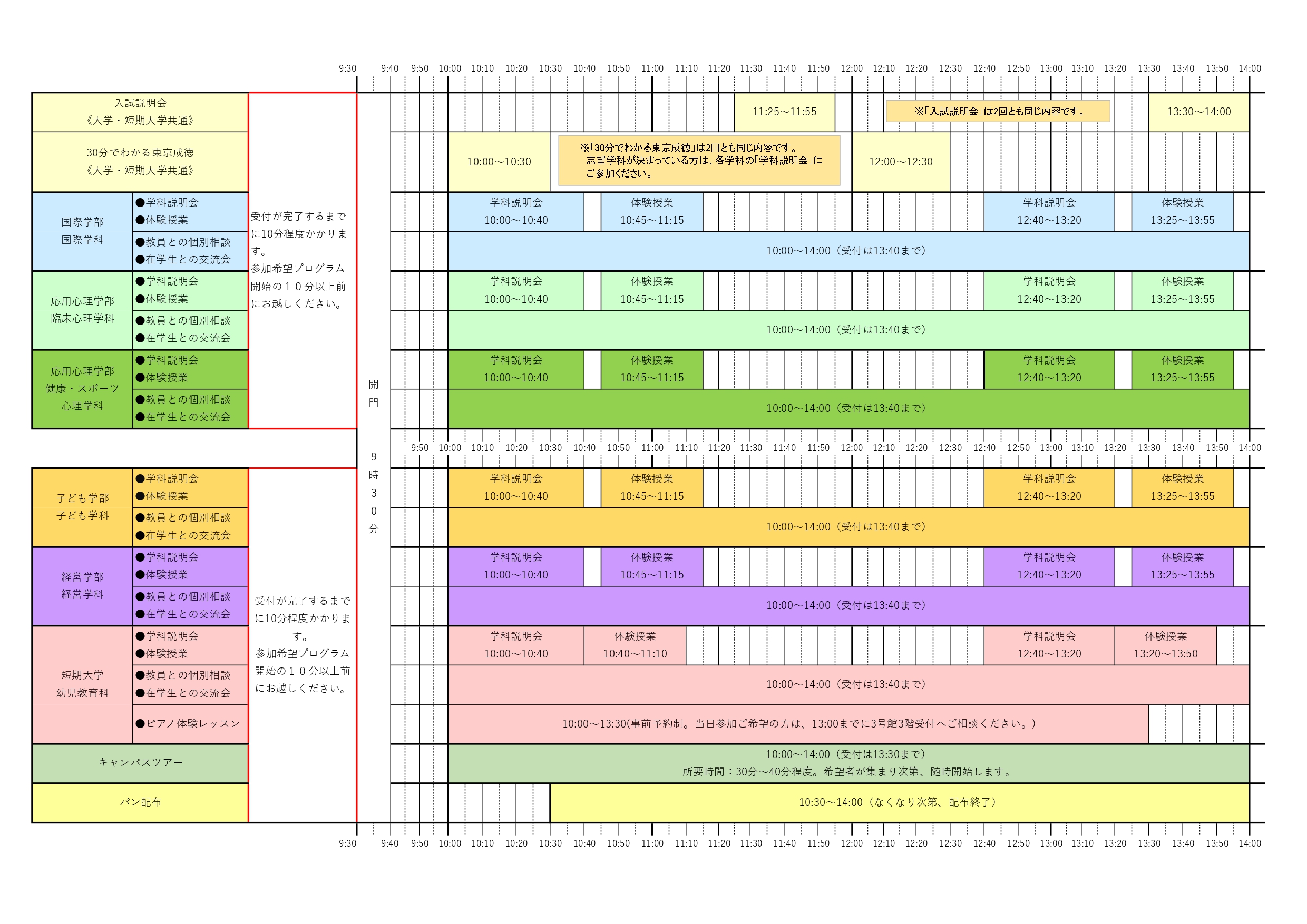 入試説明会/30分でわかる東京成徳/学科説明会/体験授業/教員との個別面談/在学生との交流会/ピアノ体験レッスン/キャンパスツアー