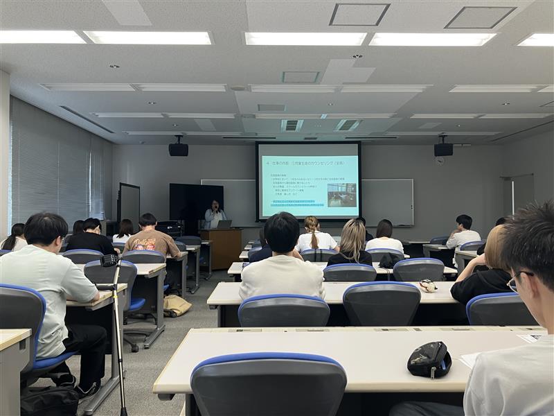 9月17日(水)に「スクールカウンセラー仕事理解セミナー」を開催しました。本セミナーは主に心理職を志望する学生がスクールカウンセラーの業務について理解を深めるために実施されました。当日は本学大学院OG職員の現役スクールカウンセラーである池上氏に業務内容についてお話いただきました。参加した学生からは「スクールカウンセラーの仕事が大変なことは知っていたつもりでしたが、仕事内容の面だけでなく、心身的な面でも大変なことがあるとわかりました。しかし、池上先生と生徒との思い出を聞く中で、スクールカウンセラーとしてのやりがいも多くあることも学ぶことができました。そろそろ本格的に職種を決める時期になって来たため、今回のガイダンスで得た学びを活かして最終的には自分が最も誇れるような職業につけるように頑張りたいと改めて思いました。」といった感想が寄せられました。キャリア支援課の今後のイベントに引き続きご注目ください。